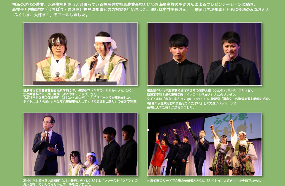 内堀雅雄知事の「ファーストペンギンになってほしい」とのメッセージに応えた高校生たちの力強いアピールは、みなさんの心にもエネルギーを与えてくれたと思います。